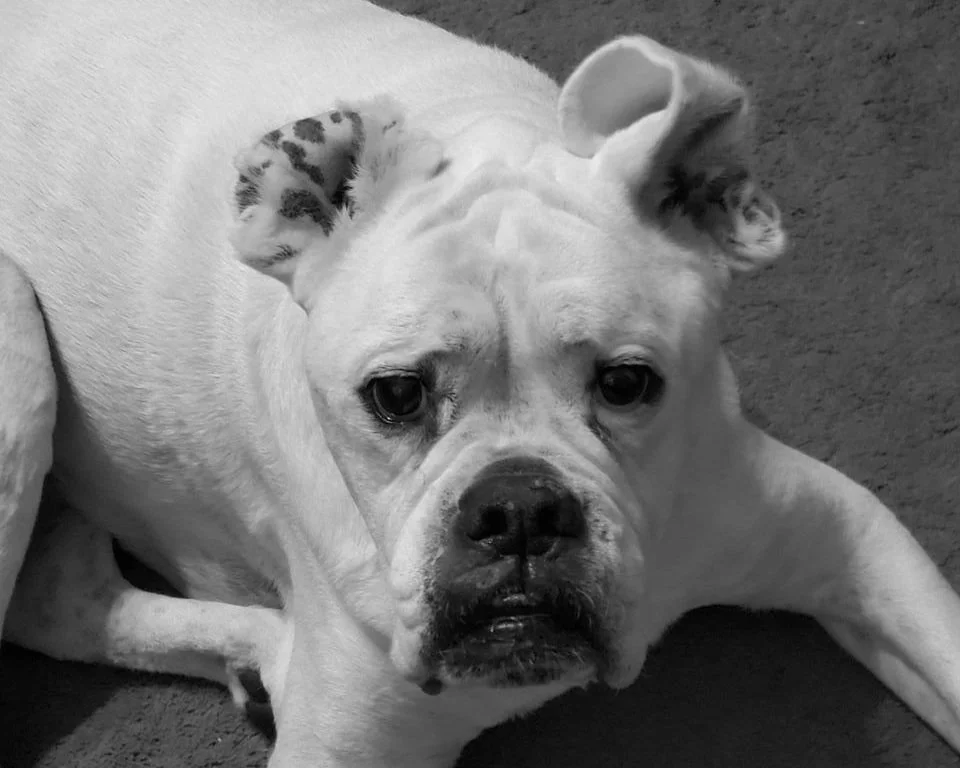 A beautiful white American Bulldog, Merik’s hobbies included chasing squirrels, taking truck rides, watching traffic in “Loomisville,” and eating river rocks. Though she was a typical dog and didn’t much care for mail carriers, Merik was much loved by everyone and never knew a stranger.